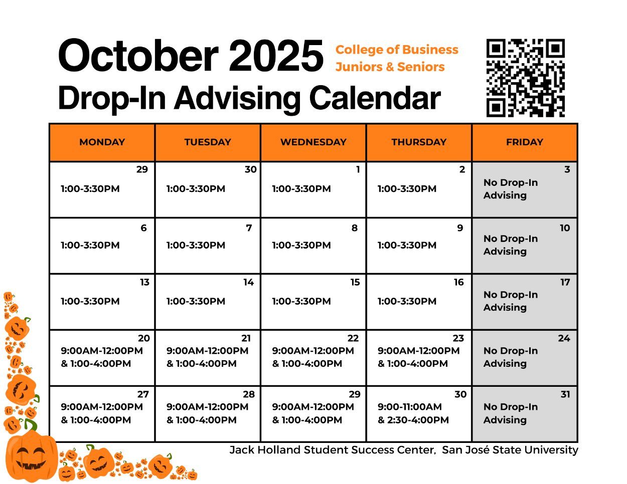 Upper Division Students (those who have completed 60 or more units) can visit the Jack Holland Success Center in the Boccardo Business Complex 008 for support.